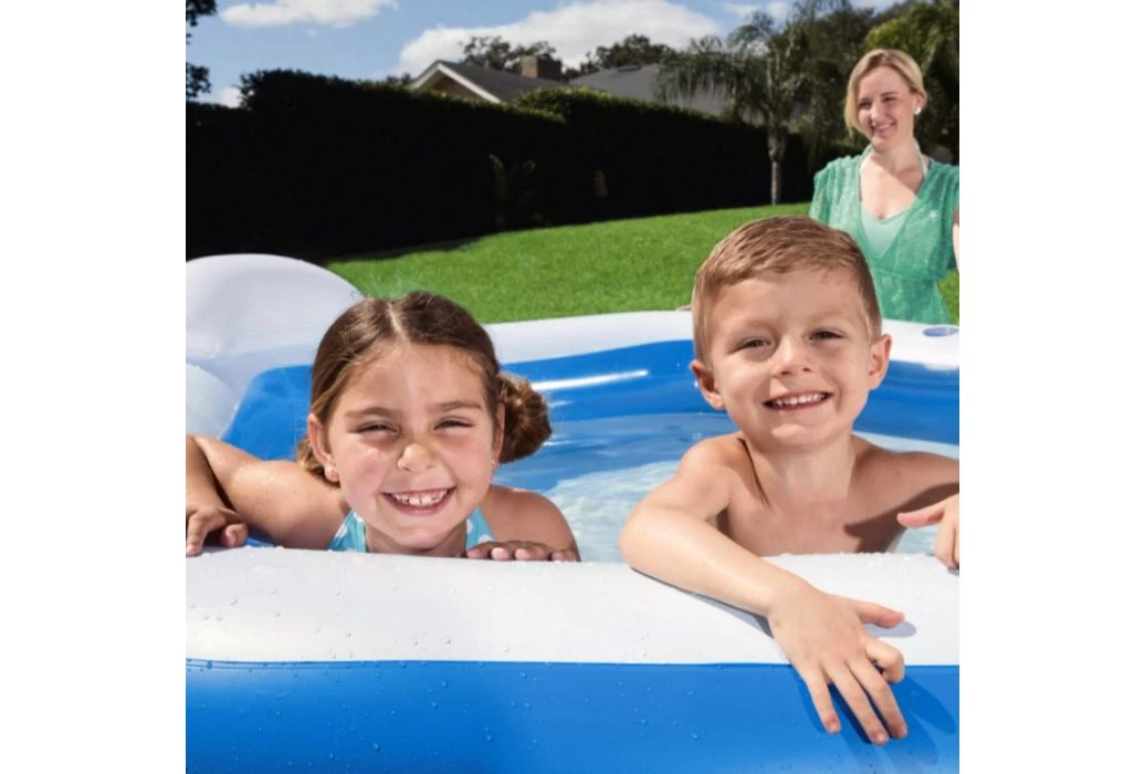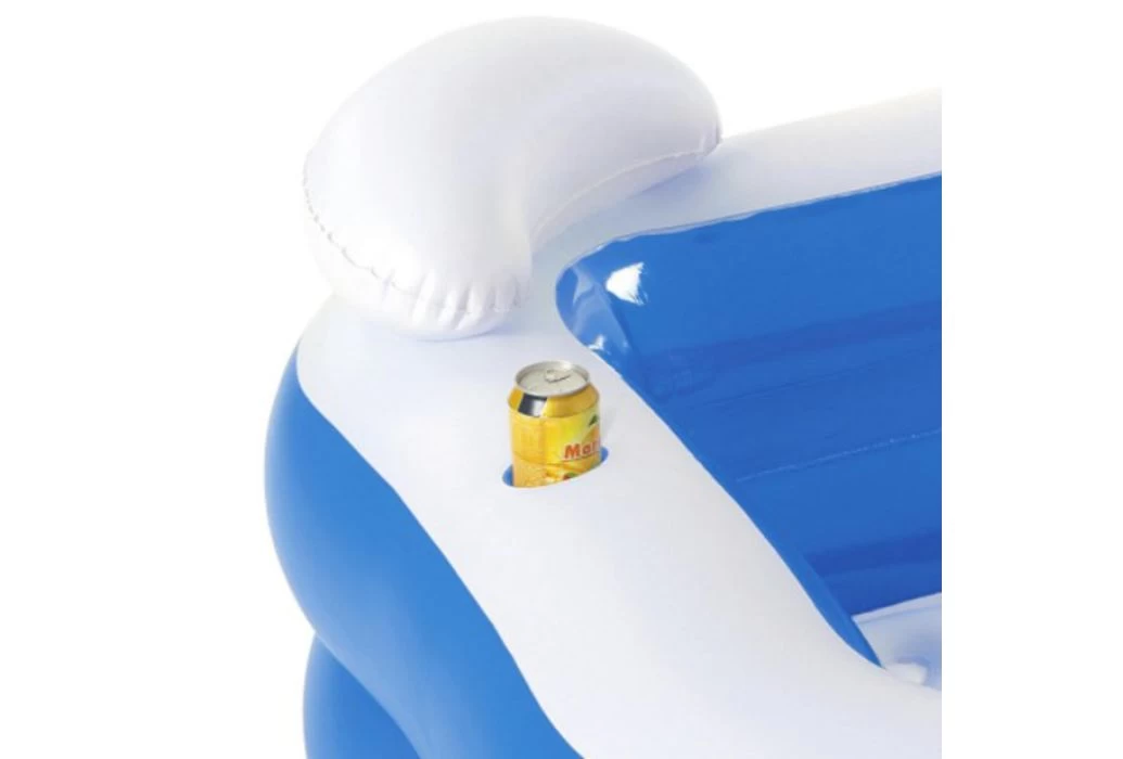 Dit Bestway opblaasbare familie zwembad zorgt voor verkoeling op warme dagen. Het bad bestaat uit 2 ringen en bevat 2 zitkussens, 2 hoofdsteunen en 2 bekerhouders.Â