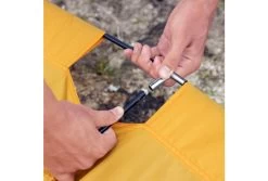 Aan elke zijde is een grijpkoord en 2 handgrepen om gemakkelijk op het eiland te komen. Ook wordt dit eiland geleverd met een afneembaar schaduwdoek zodat je nog langer op het water kunt blijven.Â