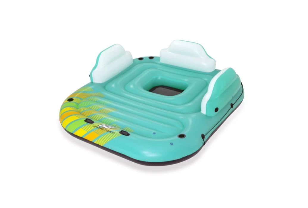 Dit superdeluxe Bestway Hydro Force Sunny Lounge eiland is voorzien van een ruim lounge gedeelte. Dit opblaabare eiland heeft 3 zitplaatsen met elk bekerhouders en een rugsteun. In het midden is een gazen bodem om het water te kunnen voelen voor extra verkoeling.