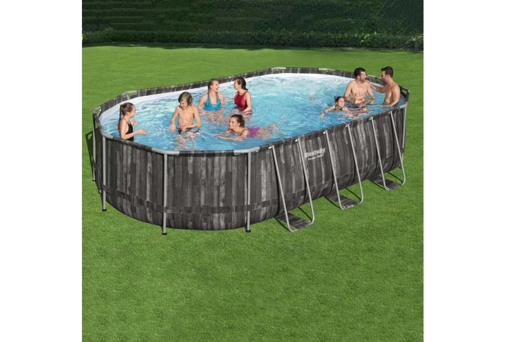 De liner van de Bestway Power Steel zwembaden is gemaakt van DuraPlus materiaal voor extra duurzaamheid. Voor extra stevigheid is dit zwembad voorzien van een 2-laags PVC band met een kern van polyester gaas. Het uiterlijk van de liner is aan de buitenzijde in een hout print uitgewerkt. Aan de binnenzijde van dit zwembad is dit een blauwe mozaïek print.Â