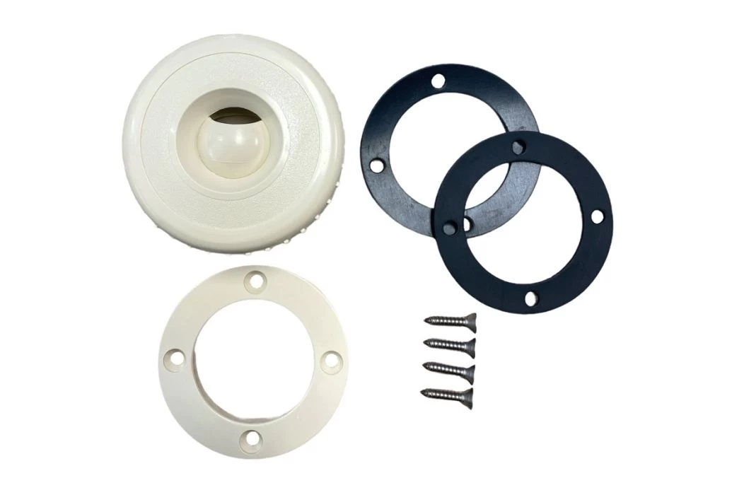 De inspuiter wordt geleverd inclusief een pakkingsset en RVS schroeven t.b.v. de afdichting; ideaal om in te metselen in je zwembadmuur. Ook kun je deze inspuiter gebruiken in een polystyreen zwembad.