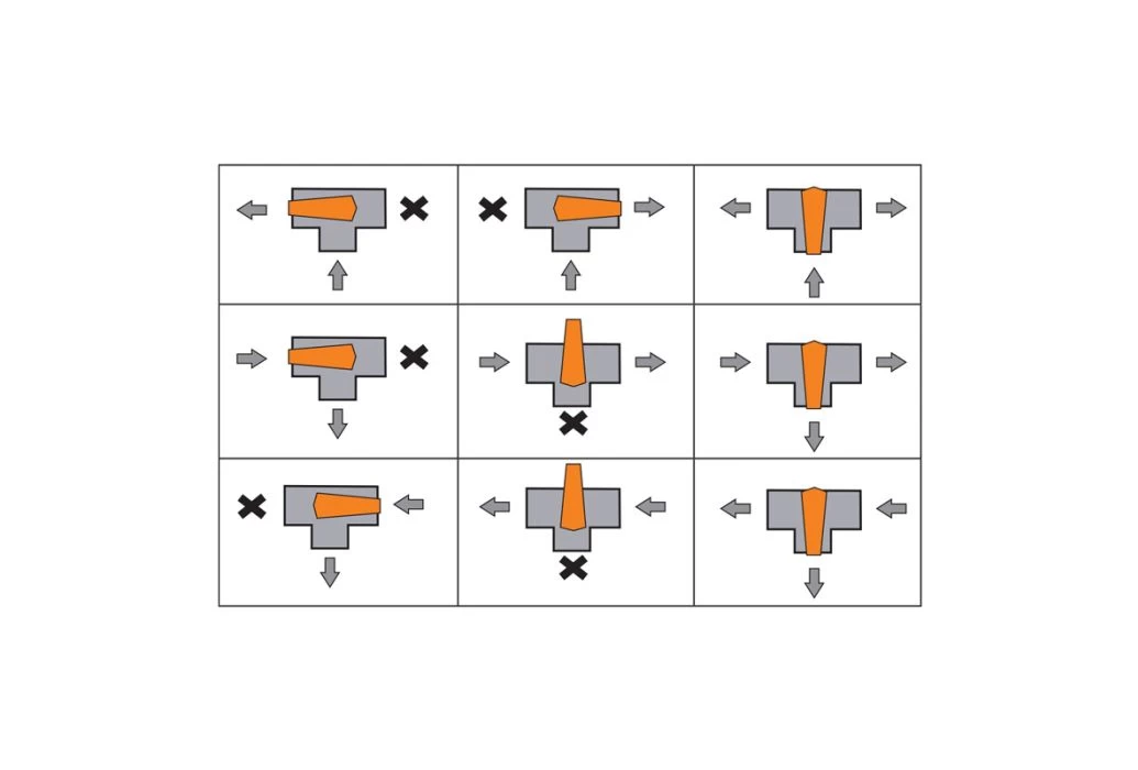 Deze verlijmbare Cepex PVC 3-weg kraan van 50 mm / 63 mm kun je probleemloos toepassen in je PVC installatie. Dit PVC hulpstuk is geproduceerd volgens DIN normen; je bent dus verzekerd van een exacte maatvoering. De tweede afbeelding geeft aan welke flow richtingen er allemaal mogelijk zijn met deze PVC 3-weg kraan.