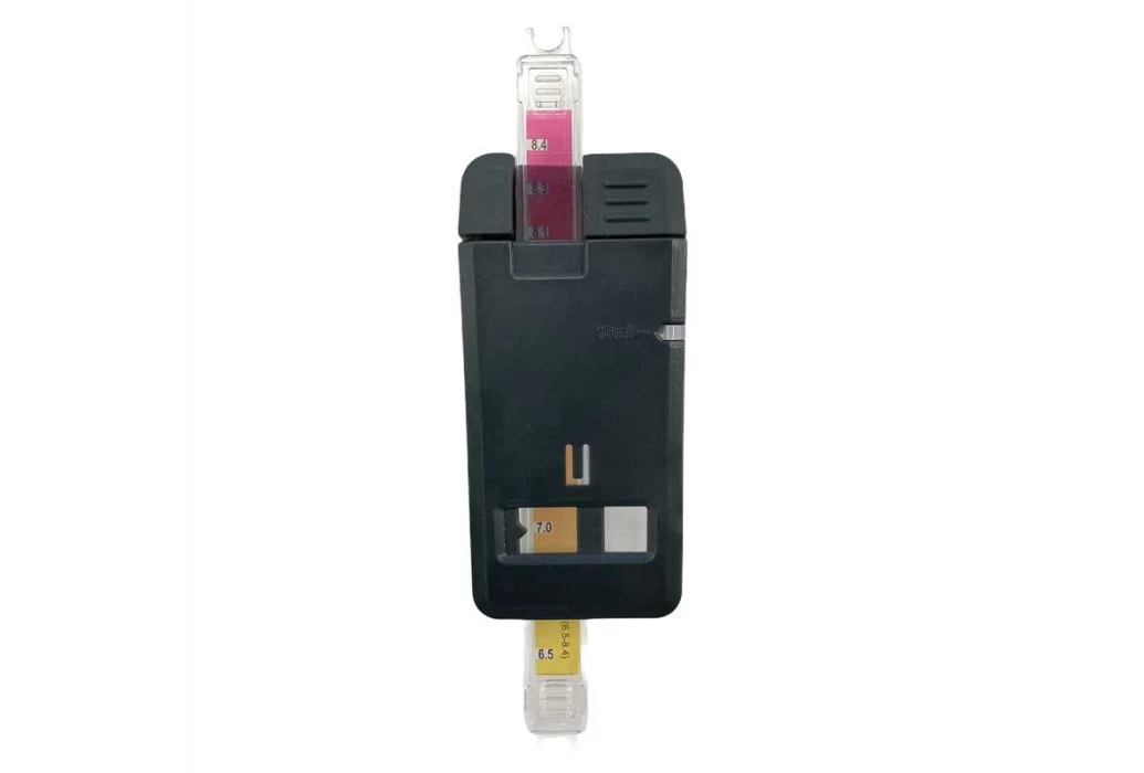 - Neem de dop van het reservoir en vul de tester met zwembad- of spawater
