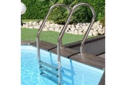 De ombouw van deze Gré Normandië heeft een dikte van 46mm, de afdekkappen zijn 28mm. Deze worden aan elkaar vastgemaakt door middel van RVS strips. De combinatie van deze RVS strips en het grenen hout zorgt ervoor dat je zwembad een hele luxe, natuurlijke en ook een robuuste look krijgt.