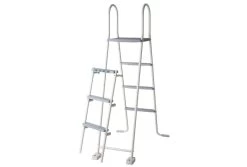 Het zwembad wordt geleverd met 8 schorren, wat zorgt voor extra versteviging. Het Gré Atlantis zwembad wordt geleverd met een zandfilterpomp, filterzand, liner, skimmer, grondvilt, inbouwdelen en afwerkkappen boven en beneden.