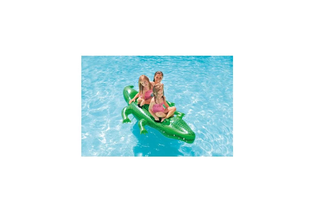Drijf mee op de rug van deze grote krokodil en geniet van het samen spelen in het zwembad.