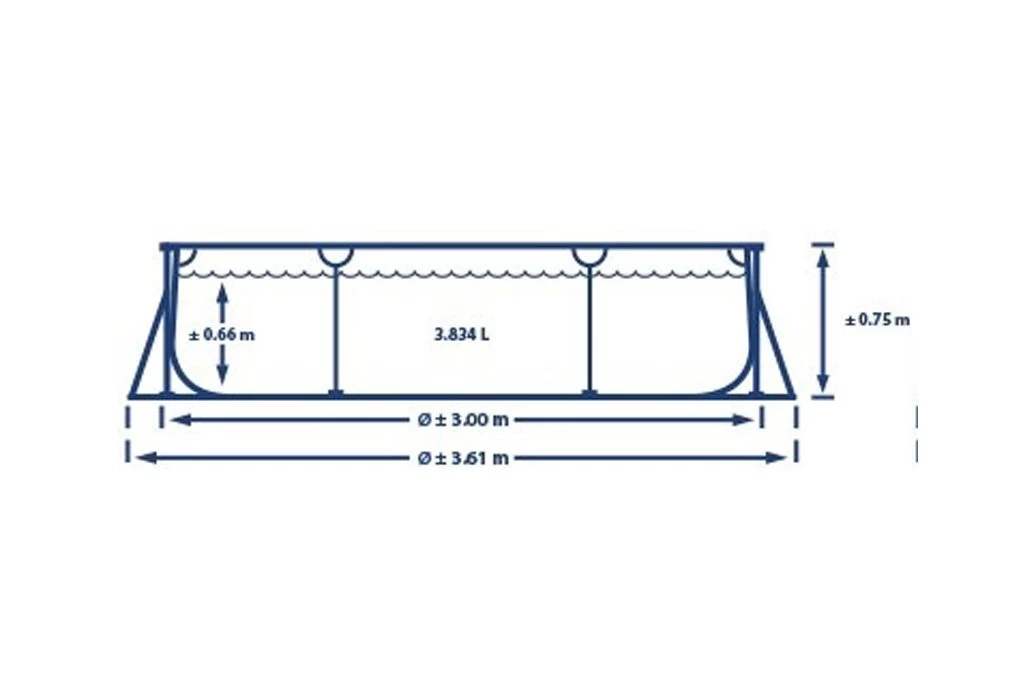 Wij adviseren bij dit zwembad met een inhoud van 4500 liter een filterpomp van Intex met een capaciteit van 1.250 liter per uur. Deze pomp zorgt dat het water voldoende wordt rondgepompt voor een goede filtering.
