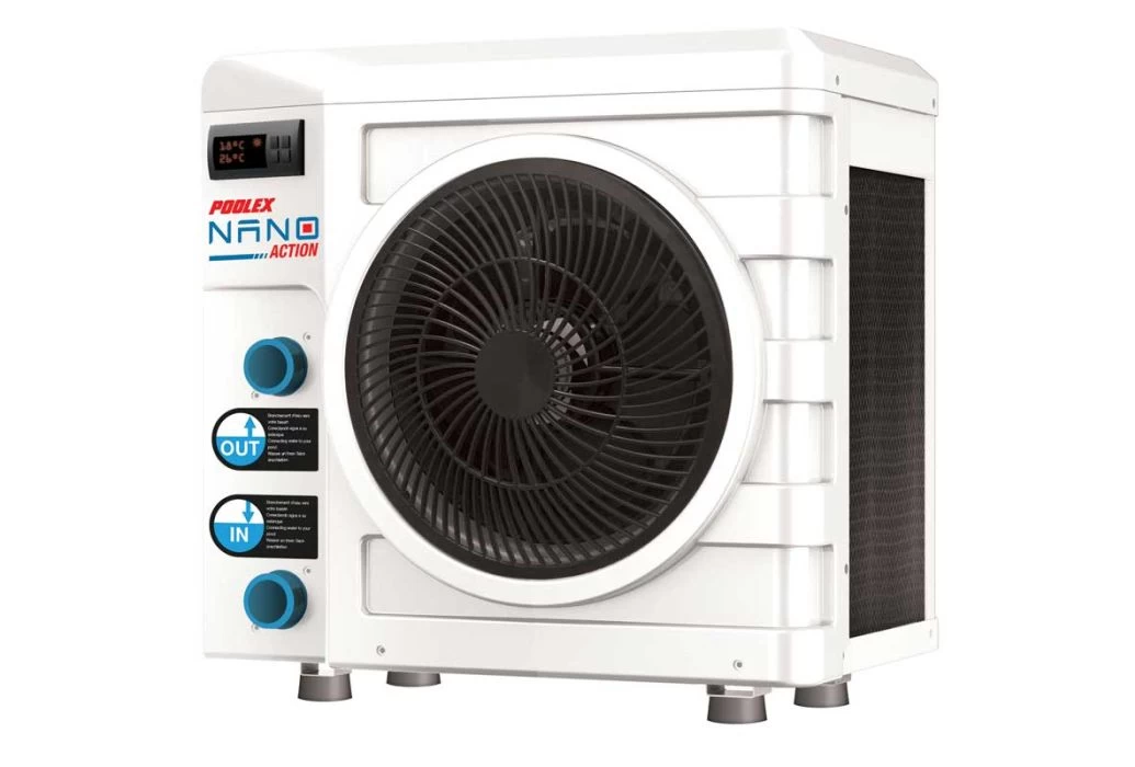 De Poolex Nano Action 5.0 kW is door zijn kleine formaat perfect voor opzetzwembaden. Bij deze zwembaden heb je namelijk de warmtepomp niet heel het jaar nodig. Waar andere warmtepompen erg groot en zwaar zijn is deze warmtepomp erg klein en relatief licht. De Nano action weegt namelijk maar 20 kg inclusief doos en is maar 400 x 280 x 385 mm. Gedurende de wintermaanden zit je dus ook niet met een erg grote doos in je garage tijdens de wintermaanden