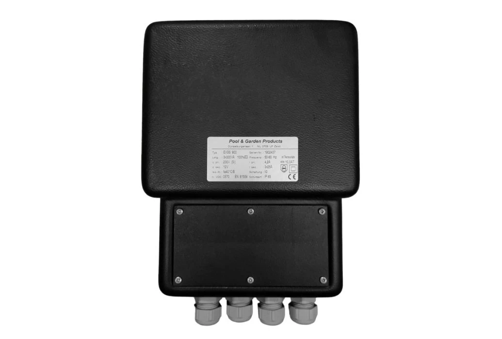 Sluit je zwembadverlichting veilig aan met deze Splash-X Transformator 50VA met 3 uitgangen. Het is een veiligheidstransformator ingegoten in een kunststof behuizing.